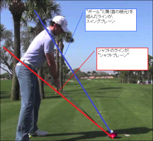 しかしまれに、高いトップからスイングプレーンラインのグリップのラインよりシャフトを寝かせながらスイングする人がいます。